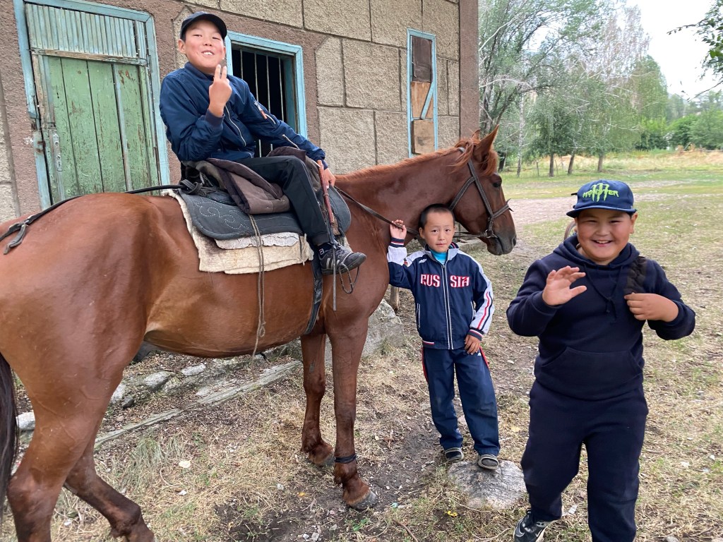 A Kemin, je m’arrête boire un thé (un tchai) et j’en profite pour recharger ma batterie. La ville fait vraiment penser à un caravansérail des temps modernes; des étals, des échoppes et des boutiques sont alignés de chaque côté de la route, avec notamment plusieurs garages. Comme les chameaux autrefois, les camions ont besoin de se refaire une santé. Cela donne l’impression que le lieu est un arrêt obligé sur une longue route et que tout le monde s’y croise.