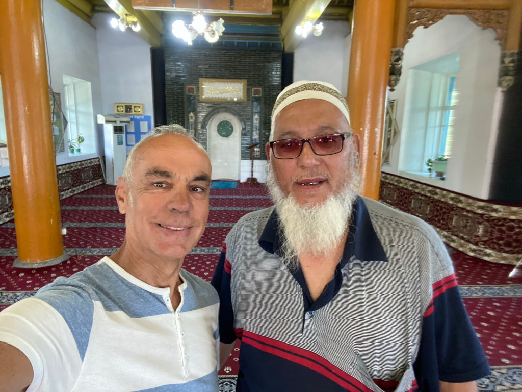 En arrivant, j’ai la bonne surprise de trouver le lieu ouvert. J’en fais d’abord le tour. Revenu devant, je tombe sur l’imam et lui demande si je peux entrer. « Muslim ? » me demande-t-il. Devant ma réponse négative, il écarte les bras en signe d’impuissance et m’invite à rester à l’extérieur pour bien observer les détails de la construction. Et puis il me demande d’où je viens. « Francia ? »; alors un large sourire éclaire son visage, il me serre à nouveau la main chaleureusement. Le mot « France » a exactement le même effet que sur le gardien d’aérodrome de St Pétersbourg. Il m’ouvre la porte en grand, j’enlève mes chaussures et je pénètre à l’intérieur. Décidément, notre pays bénéficie d’un indéniable capital sympathie à l’étranger.