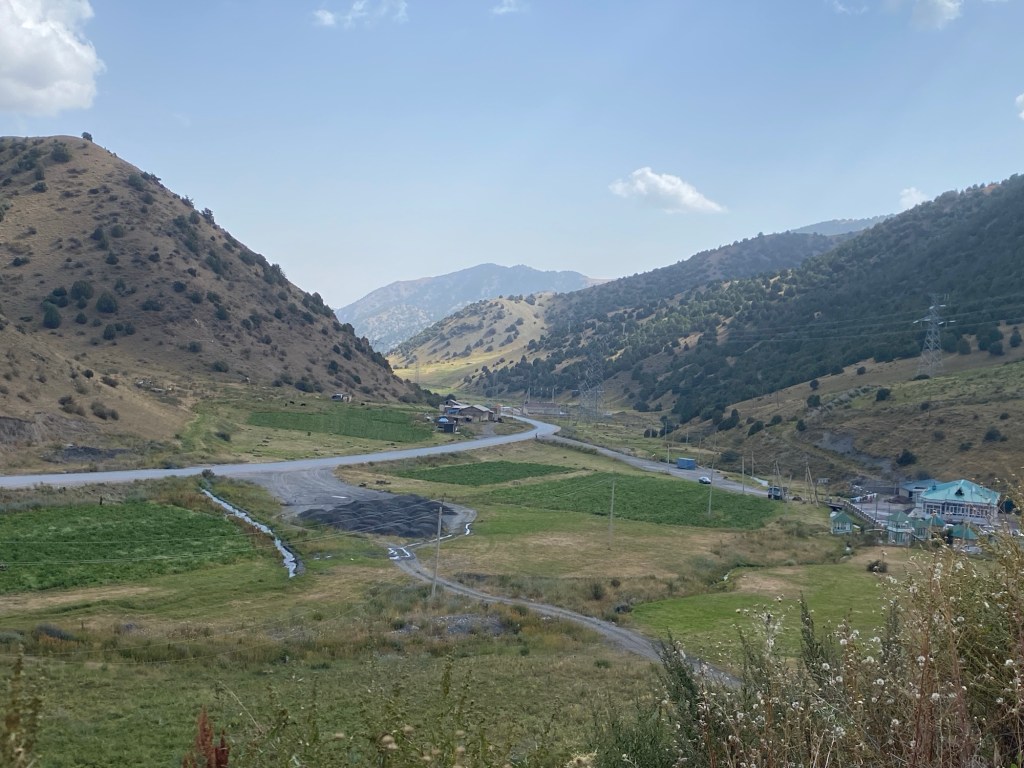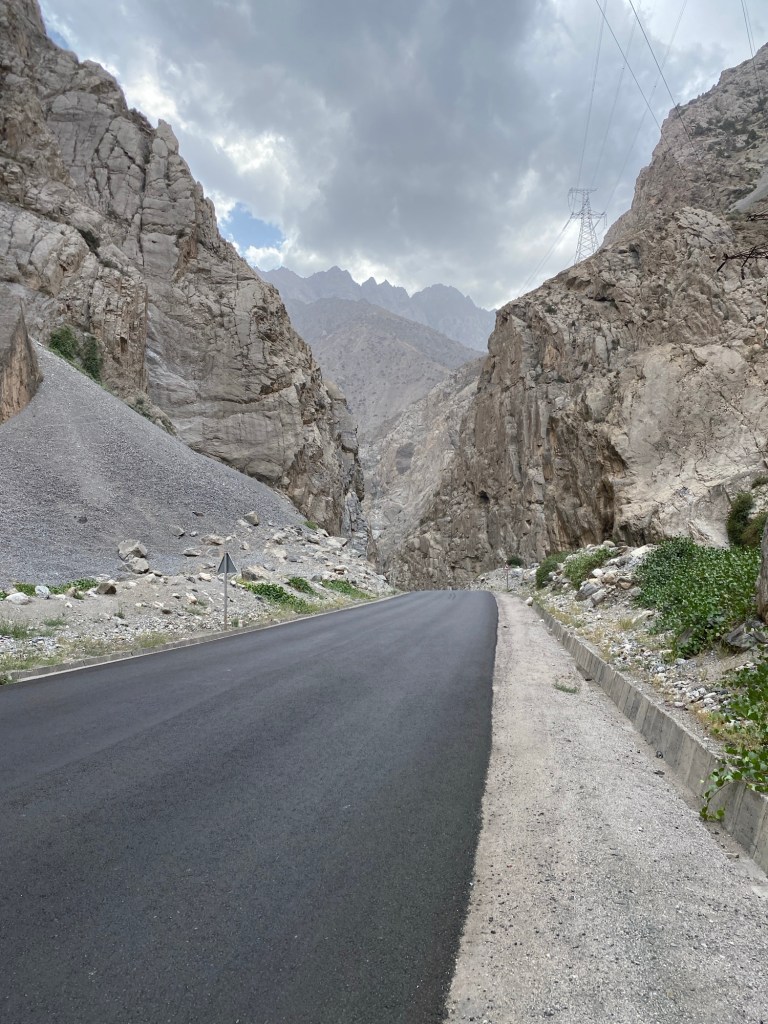 La traversée me semble interminable. Elle dure pas loin d’une demi-heure et je suis bien heureux de voir enfin revenir la lumière du jour. En fait, le tunnel de Sharistan est long de 5,2 km. C’est ce que me confirme le gardien que je rencontre à la sortie et qui m’invite à venir m’asseoir à côté de lui sur son petit banc. On partage quelques pêches en baragouinant quelques mots d’anglais et de russe.