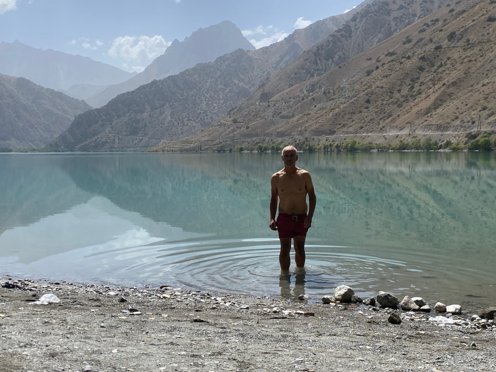 L’accès au lac est soumis au paiement d’une taxe car c’est un espace naturel protégé. Il en coûte environ 1€ aux Tadjiks et 2,50€ aux étrangers. Le préposé à la perception de cette dîme est une caricature de l’administration paperassière. Il remplit deux formulaires et une ligne de son vieux cahier d’écolier pour attester le paiement, ainsi que la date de mon arrivée et le nombre de nuits passées sur place. Je repars avec un reçu en bonne et due forme que je conserverai précieusement, rien que pour l’orthographe de mon nom en cyrillique !
