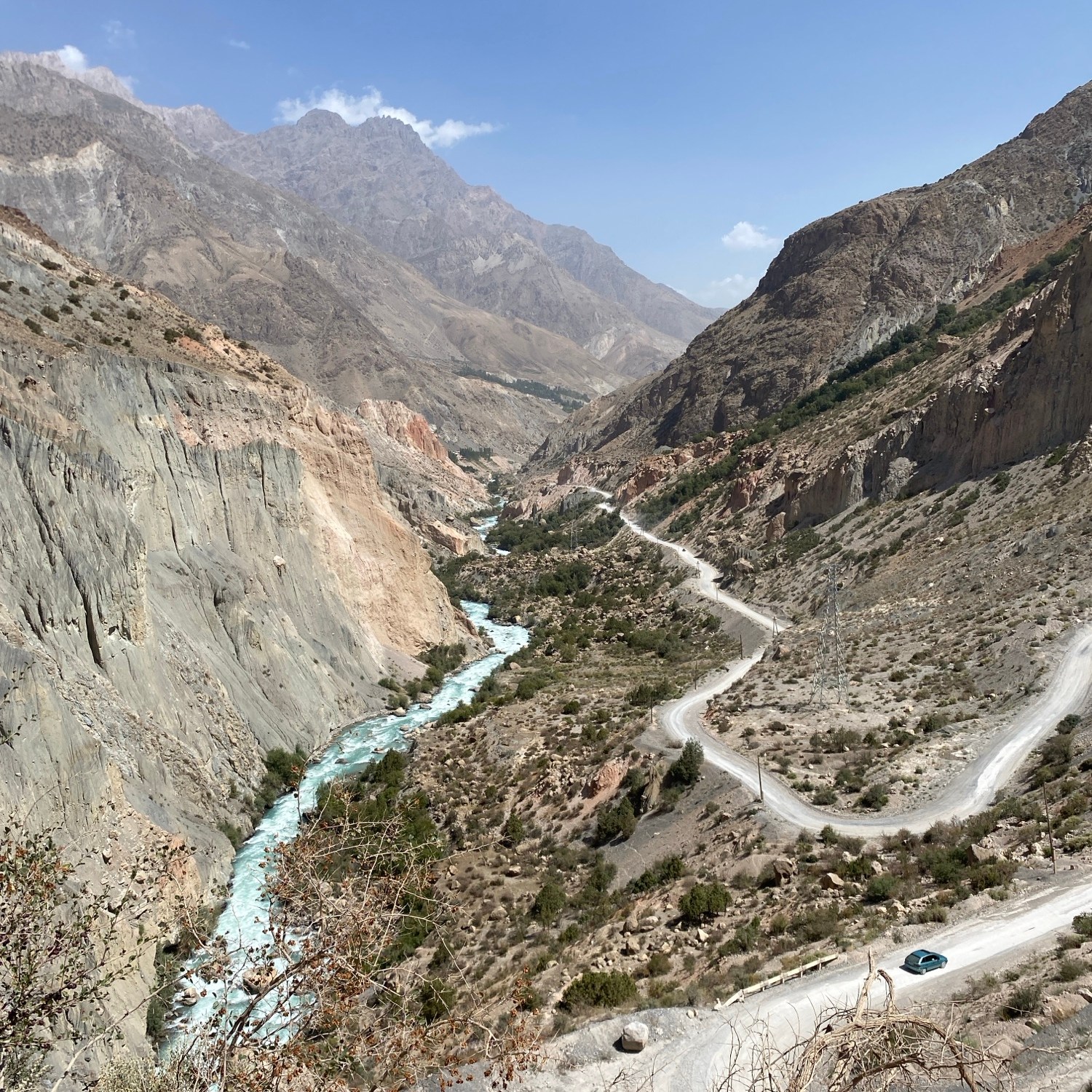 Après seulement quelques kilomètres, j’arrive à l’intersection de la route vers Iskander. Depuis Tashkent, c’est la première fois que je quitte la route principale. Et je vois tout de suite la différence ; l’asphalte se fait rare et laisse place à une piste caillouteuse. En revanche, la pente reste douce et les abords sont verdoyants, si bien que le trajet me paraît agréable. Je me prends même à chanter l’aigle noir de Barbara, « Près d’un lac je m’étais endormie ». Siffle beau merle car, près du lac, tu n’y es pas encore… Il est 9h et je me donne trois heures pour parcourir les 24 kilomètres qui me séparent du lac Iskander. 8km/h de moyenne, ça devrait le faire.