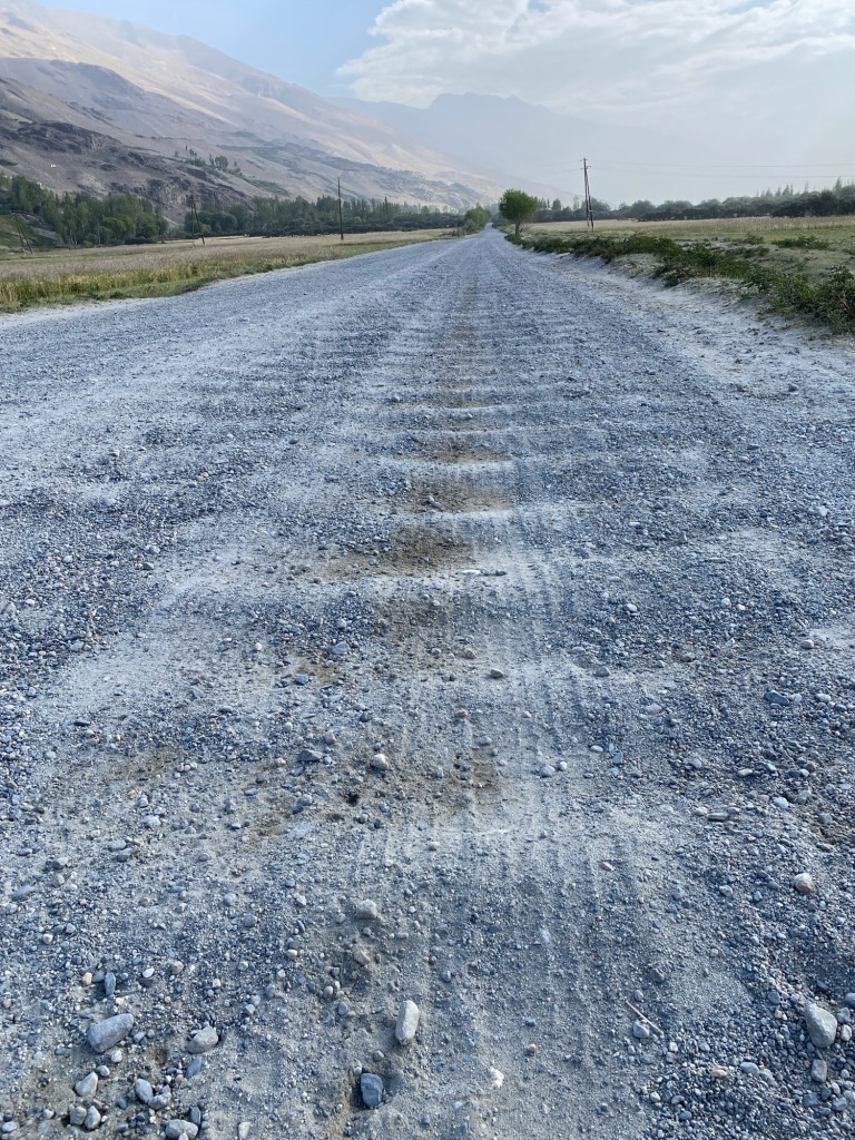 A Vrang, je sais que je joue ma dernière carte pour acheter une pompe. Le premier magasin n’en dispose pas, mais on m’indique une autre boutique. Hélas, celle-ci est fermée. Décidé à attendre la réouverture, je m’assieds devant et j’explique ma recherche à une bande de gamins curieux. L’un d’eux file et revient avec une pompe qu’il accepte de me vendre. On l’essaie sur la chambre à air crevée, elle fonctionne. Je ne négocie pas le prix qu’il demande, 100 somoni, soit à peine 10€, une petite fortune pour lui, un cadeau du ciel pour moi. Je repars tout guilleret et une charge mentale en moins. Désormais, les gros cailloux pointus me font moins peur…