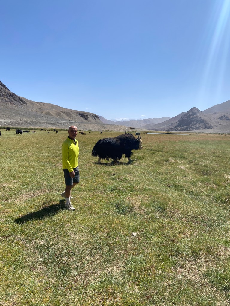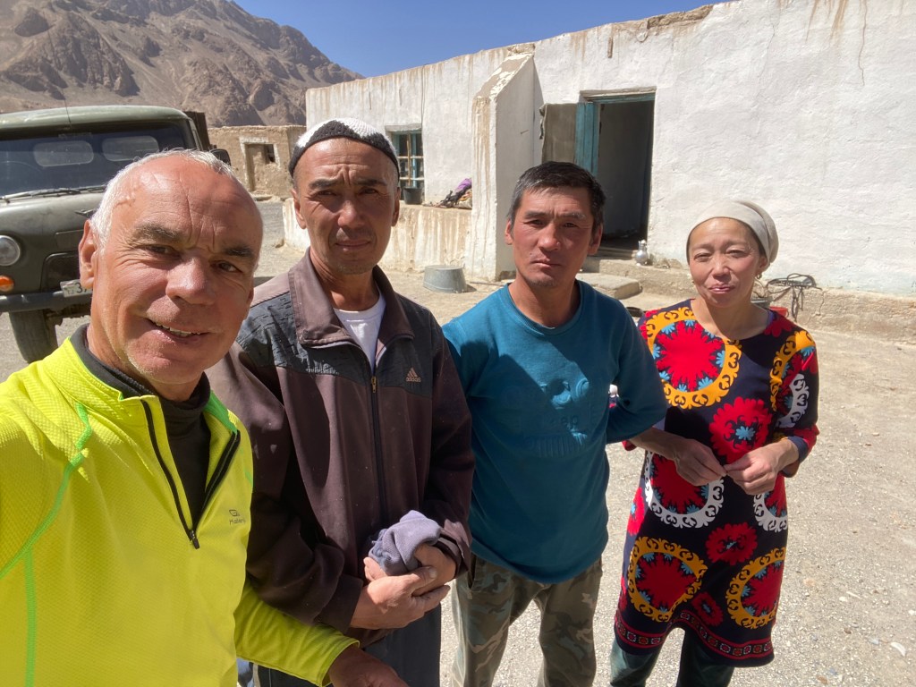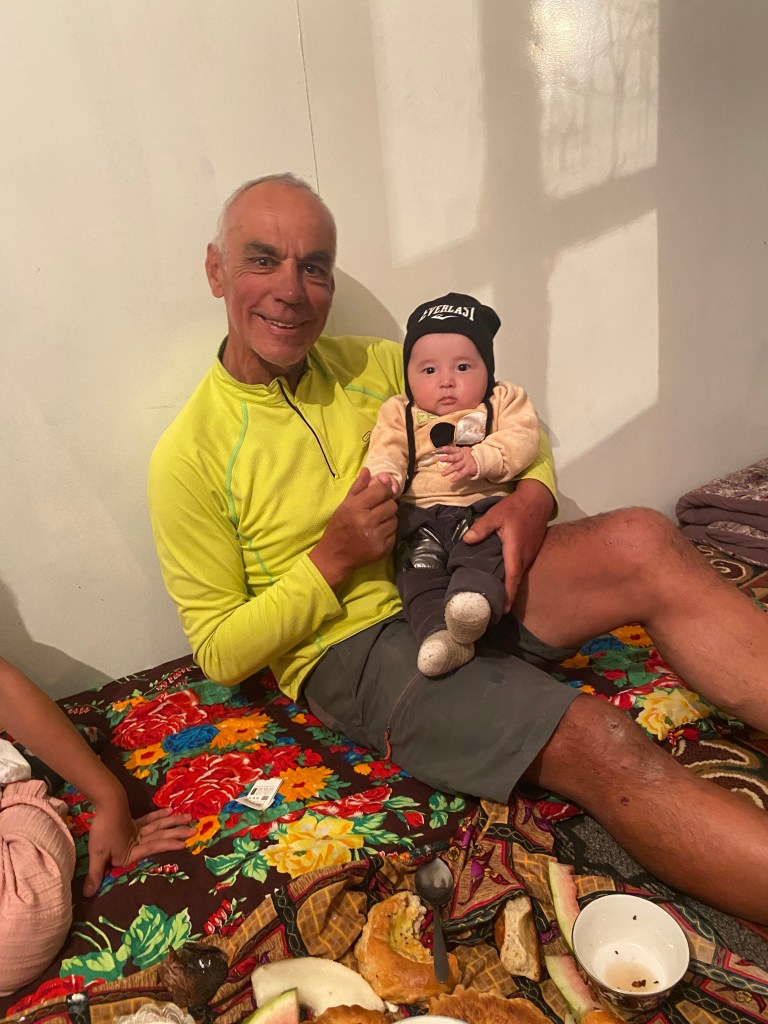 Un espace moins poussiéreux que les autres attire mon attention ; je demande, on va chercher quelqu’un qui parle anglais, et d’un coup, le cauchemar se transforme en rêve. Ikhbal est l’une des institutrices de l’école, où elle enseigne notamment l’anglais. Elle vit là avec sa mère, sa sœur, son frère, leurs conjoints et leurs enfants, en tout dix personnes sous le même toit. Les hommes, guides pour touristes, sont absents pour la semaine. Je suis convié dans la maison familiale, modeste d’extérieur mais très grande et aménagée avec soin. Le niveau de vie est largement supérieur à ce que j’ai pu constater jusqu’à maintenant. On me sert le thé, accompagné d’un énorme plov à la viande de yak pour au moins quatre personnes, de la pastèque, de la confiture, des bonbons, etc. Et très vite Ikhbal me désigne la pièce où je pourrai dormir.