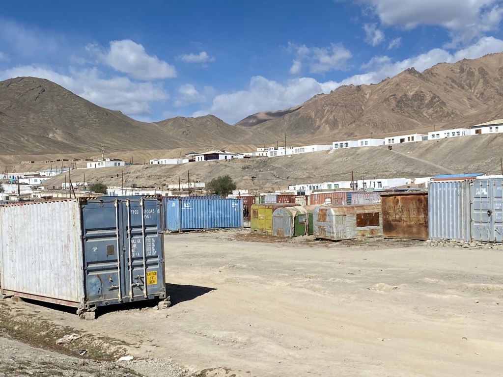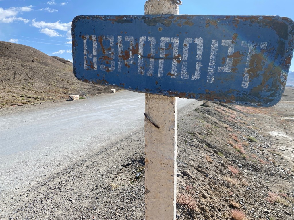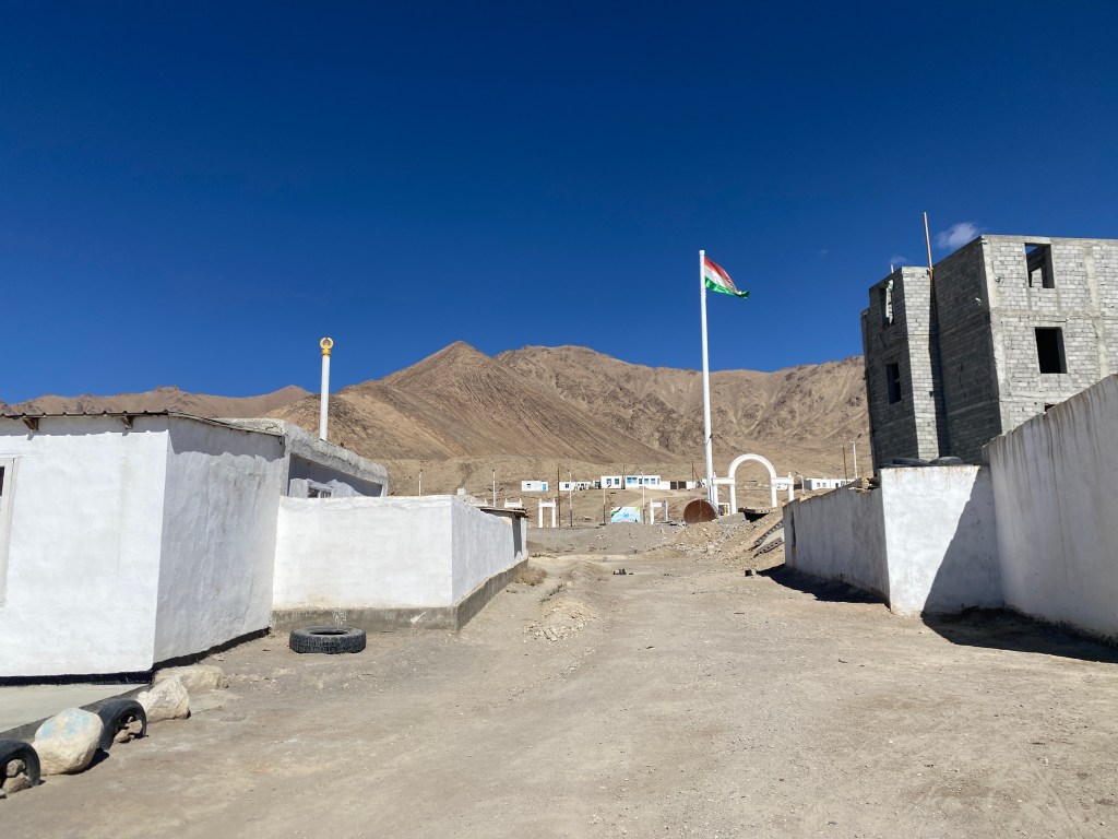 Sur une route où l’asphalte commence à apparaître au coup par coup, je repasse près du village de Kuna Kurgan, puis j’arrive assez rapidement à Murghab. Je m’installe sur le square officiel où flotte l’immense drapeau du Tadjikistan, en essayant de trouver un banc au soleil et à l’abri du vent. Je constate rapidement que la situation ne s’est pas améliorée en ce qui concerne la connexion Internet, mais il y a un peu d’espoir car des gars de Megaphon, un des opérateurs téléphoniques du pays, sont en train d’accrocher de nouveaux câbles aux poteaux téléphoniques. La connexion bas débit me permet quand même de communiquer par WhatsApp, et de rassurer la famille.