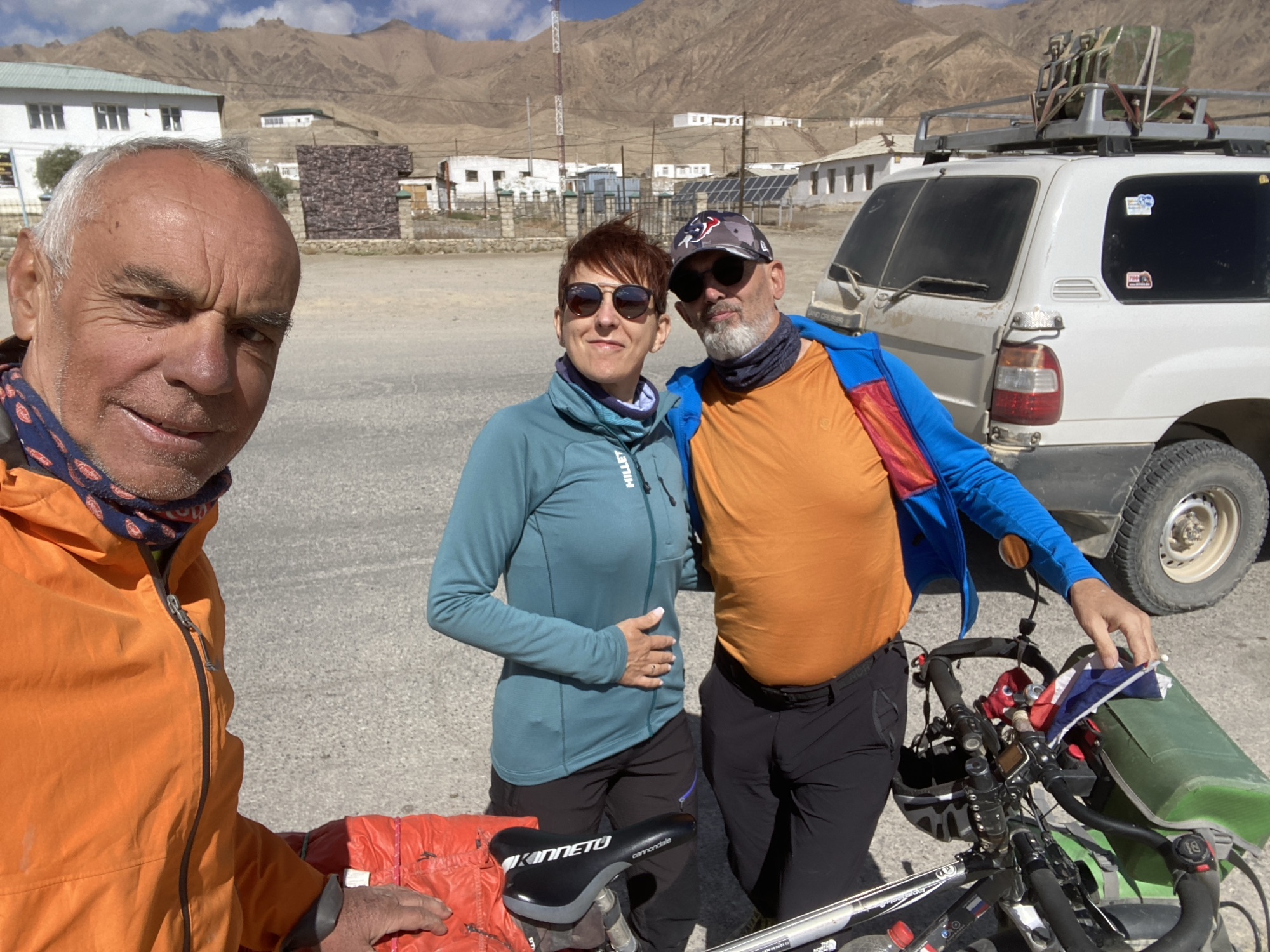 Aucune option n’étant idéale, je choisis tout simplement de faire une pause et je me dirige vers l’hôtel où j’ai déjà séjourné une nuit. Et là, je fais encore une rencontre incroyable ; un 4×4 s’arrête tout net près de moi et deux touristes en descendent, en m’appelant par mon prénom « Pascal » ! Béatrice et Jean-Paul, alias Paulo, sont un couple d’Auvergnats amoureux de l’Asie centrale. Sachant qu’ils venaient au Tadjikistan, un parent habitant Blois leur a envoyé une coupure de presse qui parlait de mon projet. Du coup ils ont suivi mon blog et cherché à me rencontrer en sachant qu’ils étaient à peu près sur la même route que moi dans les mêmes dates. Un sacré coup de chance, car à quelques secondes près, je me serais engouffré dans l’hôtel et on se serait manqué.