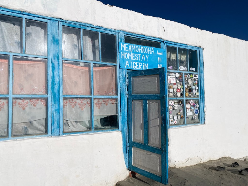 Pour l’hébergement, on n’a que l’embarras du choix entre les nombreux « home-stay » proposés. On opte pour «Aigerim» qui nous a été recommandé. Nous y sommes très bien reçus et l’allumage du poêle à la bouse de vache apporte une chaleur bienvenue dans la vaste pièce où on nous installe, qui fera office de salle à manger et de chambre commune.