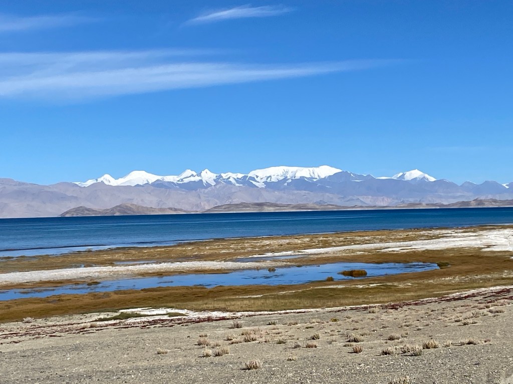 Après le petit déjeuner, Marco ne semble pas pressé de démarrer, je décide donc de prendre la route un peu avant lui, persuadé que de toute façon il me rattrapera dans la journée. Je ne quitte pas Karakul sans m’arrêter à nouveau au bord de la route pour photographier ce joli lac qui marque le point le plus septentrional de mon voyage. Et je repars sur la M41 vers le Sud sur une vingtaine de kilomètres. Tout du long, je ne peux pas m’empêcher de regarder cette barrière de fils barbelés qui marque la limite de la zone de sécurité avec la Chine. C’est fou ce que les Hommes peuvent déployer comme moyens et comme imagination pour se séparer les uns les autres.