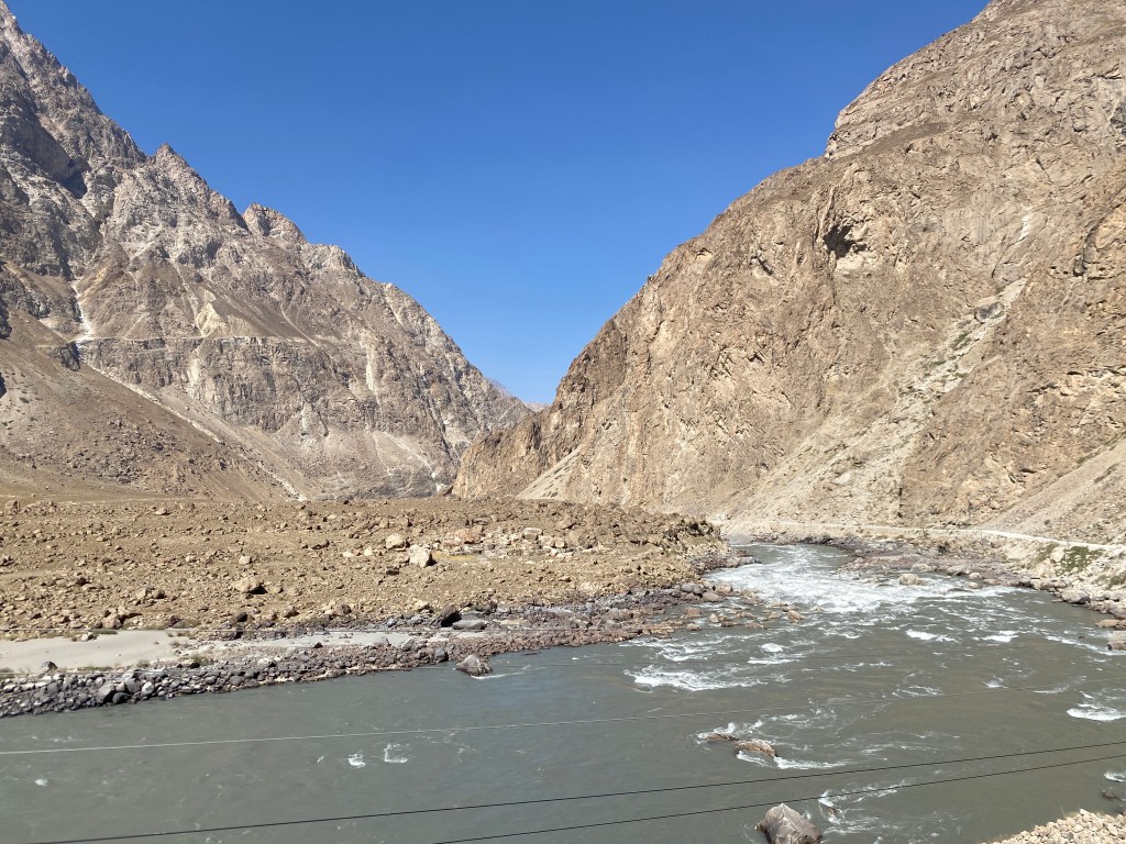 J’ai ensuite la surprise de m’entendre héler à deux reprises depuis l’autre côté, à des endroits où la rivière est si peu large qu’on peut se parler d’une rive à l’autre. C’est d’abord un monsieur sur son âne qui m’appelle en agitant les bras, puis un groupe d’écoliers qui me lancent des « Hello »! sonores. C’est triste de penser que ces deux peuples qui n’en sont qu’un seul, les Pamiris, sont séparés par une frontière tracée sous les ors de Versailles à l’issue d’un conflit dans lequel ils n’avaient rien à voir. Et l’histoire récente leur interdit même de se rendre visite…