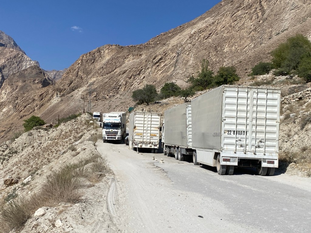 Ma prévision du jour est de faire un gros tiers du chemin vers Qalai Khumb, soit une soixantaine de kilomètres. La Pamir Highway suit la rivière Panj qui marque la frontière avec l’Afghanistan ; c’est un axe majeur du pays, qui relie la capitale au Pamir et à la Chine. C’est d’ailleurs pour cela que les Chinois ont entrepris d’énormes travaux d’amélioration de cette route, vitale pour leurs exportations. C’est une des branches des fameuses nouvelles routes de la soie.