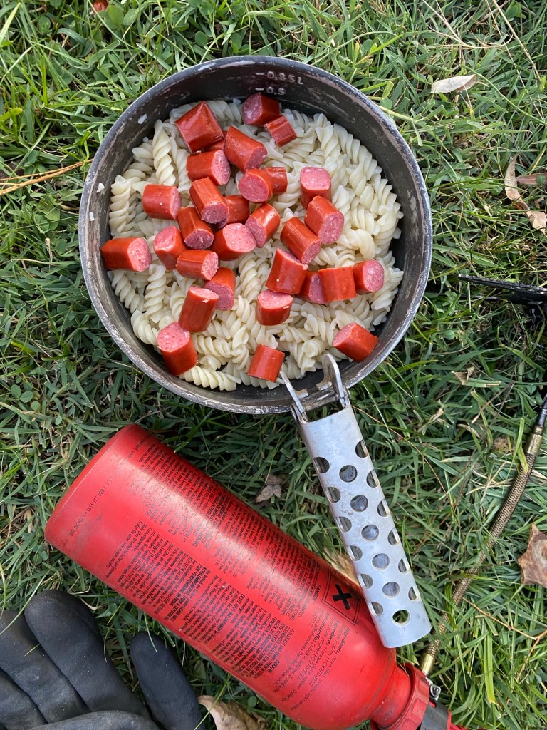 Dans le premier village après Rushan, un étang sympathique m’invite à poser ma tente, ce que je fais avec l’approbation d’un riverain. Je profite d’un accès facile à l’eau pour tester mon matelas, sur lequel je détecte une cinquième fuite que je colmate, pensant m’assurer ainsi une nuit tranquille. Et tant que je suis dans le rebouchage de trous, je répare la chambre à air numéro 2, des fois que… Jusque-là mon pneu arrière semble tenir, mais c’est certainement une crevaison lente. Un bon plat de pâtes à la saucisse fumée vient conclure cette journée à surprises.