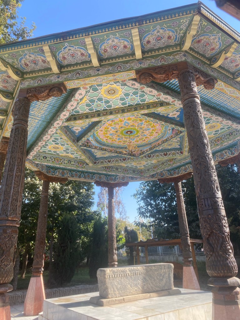 Kulob abrite un des rares sites historiques du pays, le mausolée de l’écrivain Said Ali Hamadoni, né en Iran en 1314, grand voyageur et prédicateur. Lors de son passage à Kulob, il réunit 700 disciples qui le suivirent en Inde pour répandre l’Islam. Après sa mort en Afghanistan, ses disciples décidèrent de construire ce mausolée en son honneur. Un jeune guide anglophone me fait visiter le lieu saint, puis le musée attenant en m’expliquant le contenu de chaque vitrine des quatre salles de l’établissement. Pour une fois que je trouve matière à visite, je ne vais pas me plaindre.