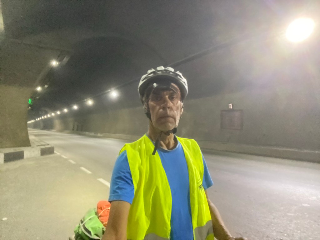 Le tunnel est bien éclairé, mais je prends soin de m’équiper et d’allumer toutes les lumières dont je dispose. Vu de dos, je dois ressembler à une guirlande de Noël clignotante ! Mais dans ce cas précis, le ridicule ne tue pas, il peut même vous sauver la vie. Comme il est en descente, le tunnel de 2,2 kilomètres est vite expédié ; rien à voir avec celui du début de mon séjour.