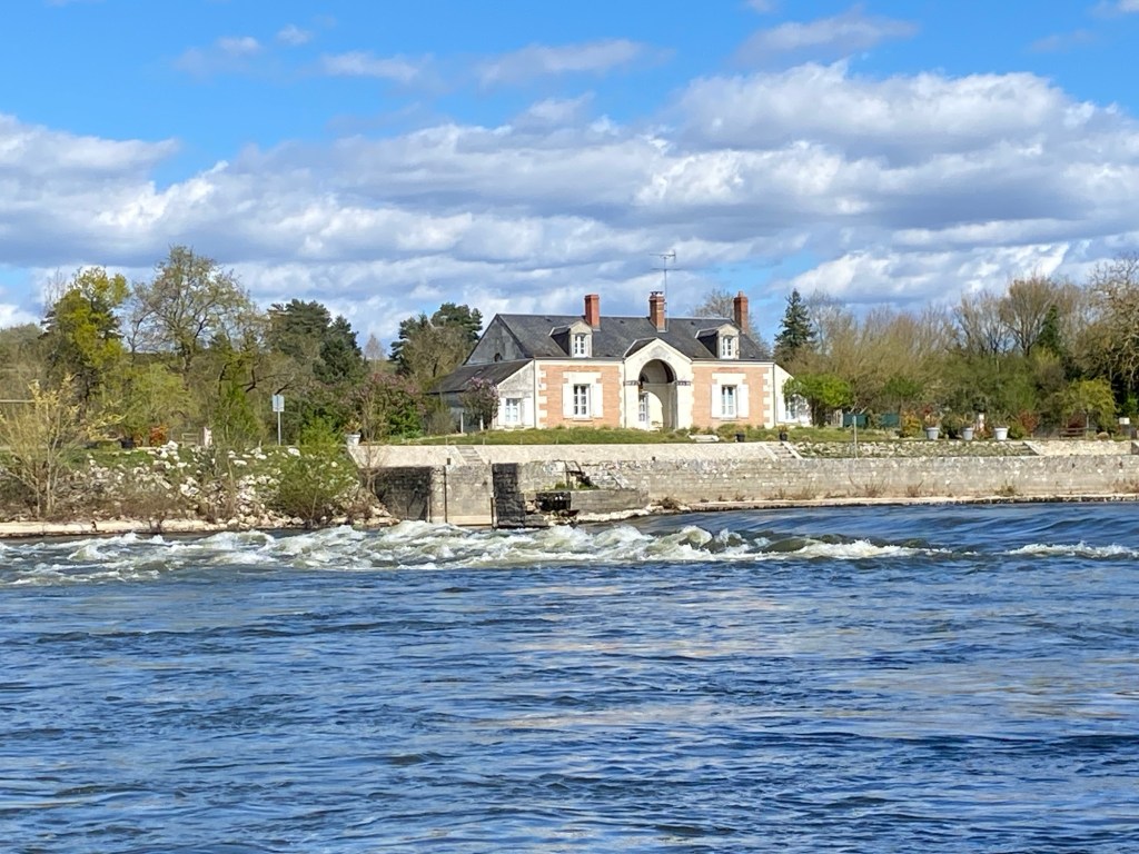 Après seulement quelques kilomètres, je rejoins les bords de la Loire. À l’entrée de Tours, il m’arrive une petite mésaventure amusante. Tandis que je roule tranquillement, une jeune femme me double fièrement. À peine 1 km plus loin, je la retrouve arrêtée, visiblement, en proie à un problème mécanique. En bon cycliste, solidaire, je m’arrête pour proposer mon aide. Et là, je découvre que le problème mécanique est tout à fait particulier : son manteau est coincé entre le patin de frein et la jante de la roue arrière. Impossible d’avancer, de reculer ni même de descendre de vélo. J’ai beau m’escrimer à faire tourner la roue en avant ou en arrière, rien à faire elle est complètement bloquée. Reste donc une seule solution, démonter le patin de frein, ce que je fais grâce aux petit outil multifonctions que ma petite-fille Zoé m’a offert à Noël. Libérée, la jeune fille peut poursuivre son chemin et arriver à l’heure à la fac. Et moi, j’ai fait ma BA du jour.