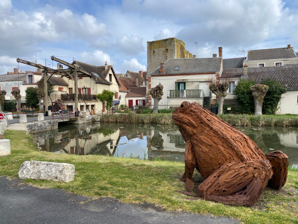 Je traverse Vierzon presque sans m’en apercevoir car le canal évite les zones urbaines denses. Après 60 Km, je fais ma pause déjeuner à Méhun sur Yèvre, ville qui garde la mémoire du passage de Jeanne d’Arc. J’ai si froid assis sur mon banc que je passe boire un café dans un bistrot avant de reprendre la route.