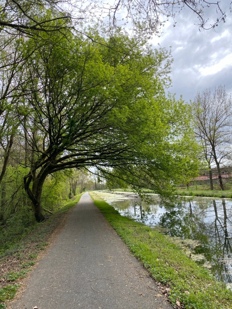 Et je me régale vraiment à rouler de bon matin sur ces chemins parfaitement entretenus, accompagné par le chant des oiseaux et subjugué par les nombreux passages de hérons cendrés. J’aimerais capter en vidéo leurs envols majestueux, mais les oiseaux me repèrent toujours avant que je les aperçoive et décollent sans que j’ai pu me saisir de mon téléphone.