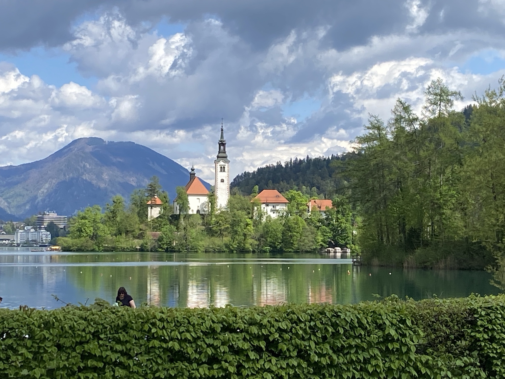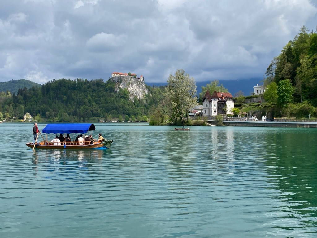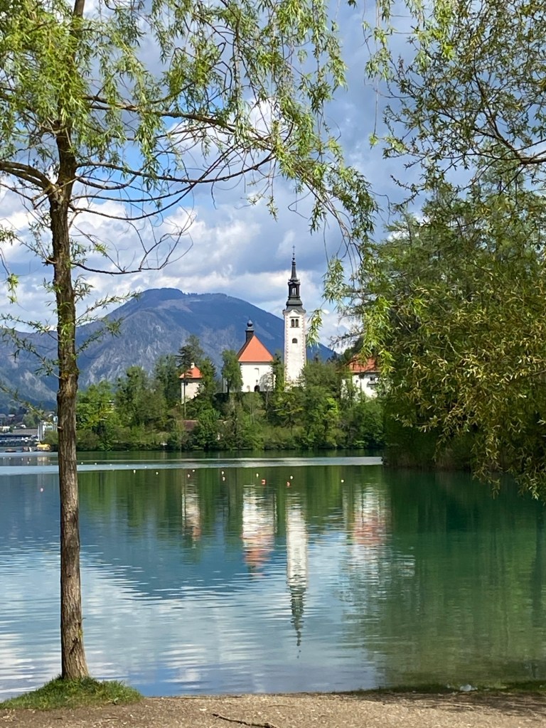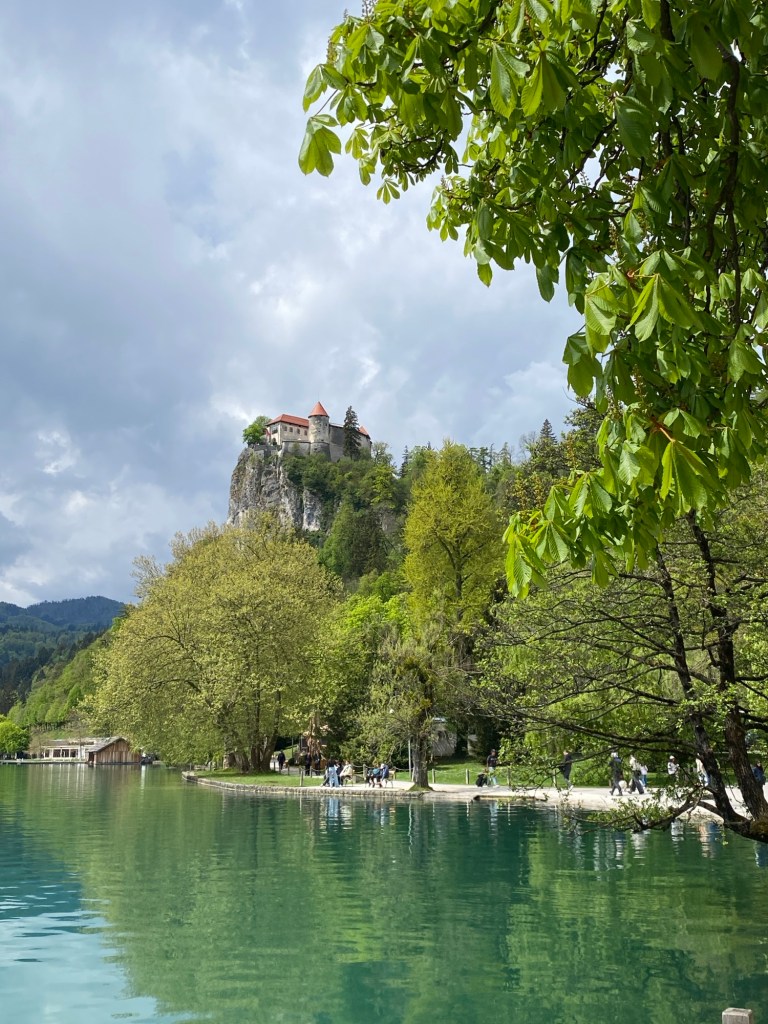 Il est à peine midi quand j’arrive à Bled, qui n’est pas un trou perdu comme certains pourraient prétendre. C’est même une ville animée, entièrement tournée vers son lac qui n’est pas très grand, environ 2Km sur 1,5, mais avantagé par le cadre grandiose dans lequel il est posé. Et puis il y a ces points qui accrochent irrésistiblement le regard, d’abord l’île de Bled de laquelle émerge l’église de l’Assomption, un lieu de pèlerinage, et puis le château perché sur un impressionnant éperon rocheux.