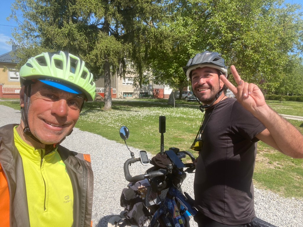 Un peu plus loin, j’aperçois venant en sens inverse, la silhouette caractéristique du vélo chargé du cyclo-voyageur. Je coupe la route et m’arrête à sa hauteur. C’est Waabbi Perez, un jeune Argentin qui parcourt l’Europe depuis deux ans. Il rentre de Chypre et remonte vers la Grande Bretagne en suivant à l’envers le même chemin que moi. Il filera ensuite en Islande, puis ce sera l’heure du retour au pays. Il me montre son compteur et je n’en crois pas mes yeux : 46.550 Km ! Je me sens vraiment petit joueur. Du coup, on échange des infos, je lui conseille la Slovénie, il me met en garde sur les conditions de circulation en Bulgarie et chacun reprend sa route. Ce soir, je me suis abonné à sa chaîne YouTube.